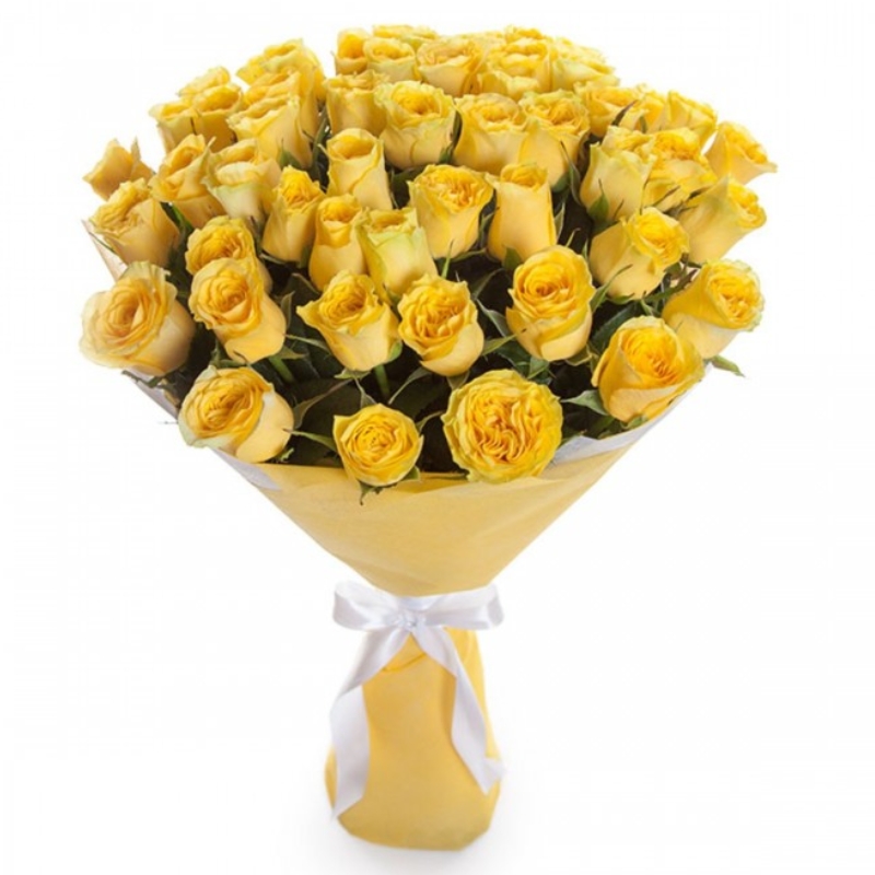 Букет состоит из 55 желтых роз, красивая упаковка, атласная лента.
